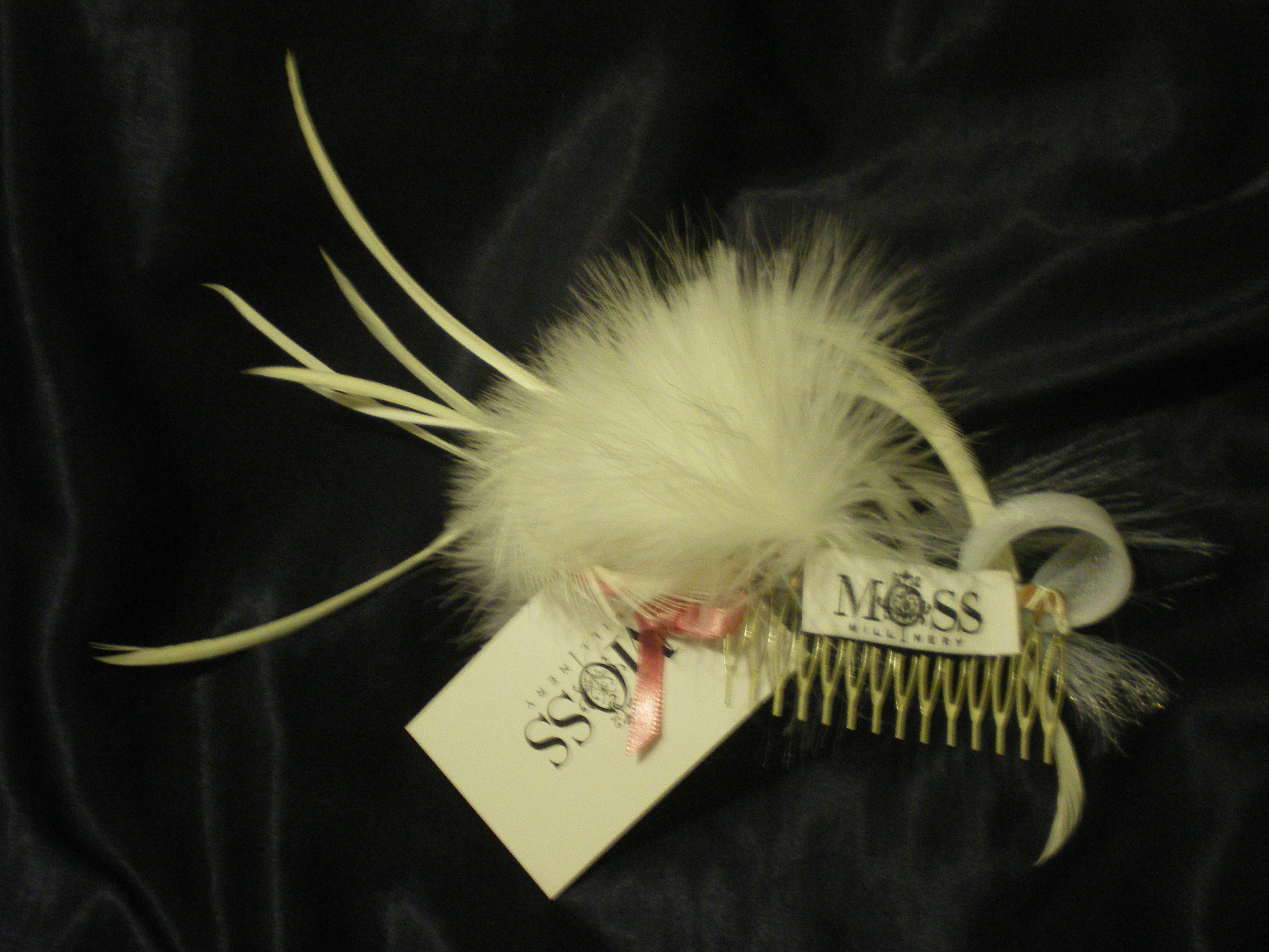 Bridal fascinator with white marabou spike and tuft feathers with crinoline embellishment ← Previous Next → Bridal fascinator with white marabou spike and tuft feathers with crinoline embellishment Share on X (Opens in new window) X Share on Facebook (Opens in new window) Facebook Share on Pinterest (Opens in new window) Pinterest Email a link to a friend (Opens in new window) Email